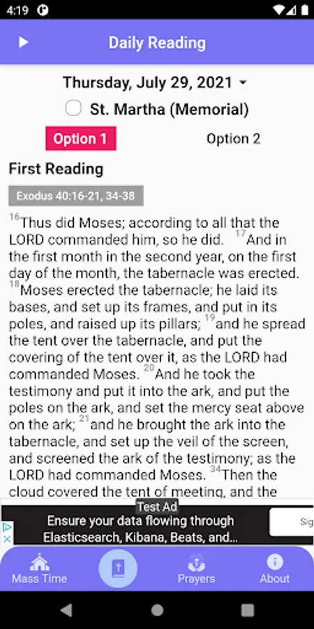 Daily Bible Readings, Full Liturgical calendar with color coded titles showing Holy Days of Obligation, Saints, Feasts, Solemnities, etc. View Bible readings for any other day by changing the date in calendar. Listen to the Daily Readings using Google Assistant voice