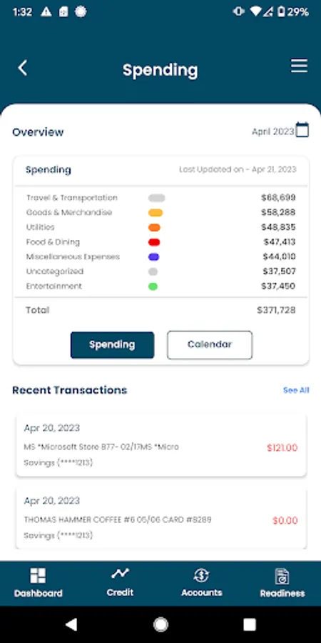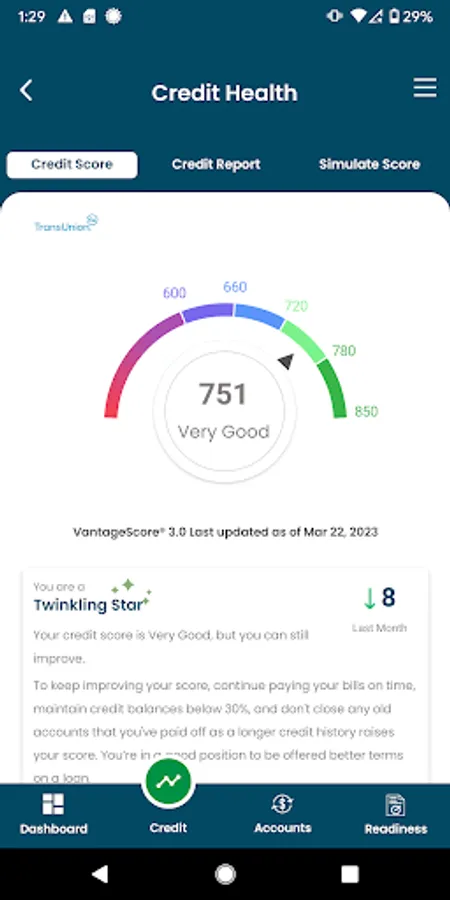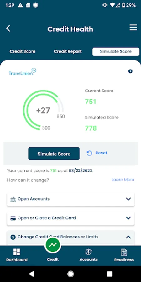 Your credit score is prominently displayed in your dashboard - and it doesn't cost you anything. Track changes month to month and learn the key factors that make up your score like length of credit, timely payment history, utilization of credit, total accounts opened and inquiries. Don't worry, this is a "soft credit pull" meaning there is no impact to your score by checking it. Look through your credit report for accuracy. Access helpful articles that explain credit bureaus, credit score, and more.