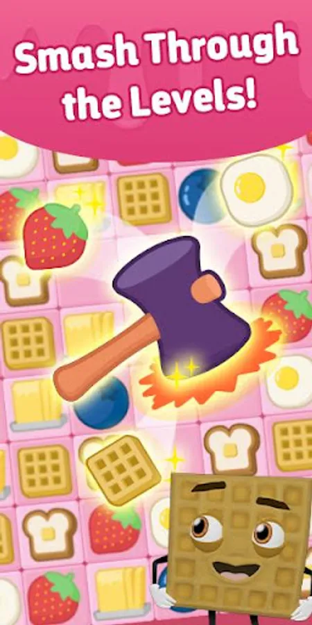 “Waffle Smash: Chicken & Waffles” is a connect 3 game where players try to connect 3 or more icons to complete objectives. The levels scale up in difficulty as the player progresses through the game. The art is in a cartoon, breakfast theme, that is loads of FUN!