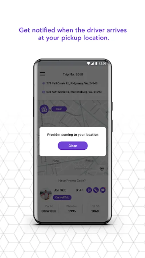 Usa tu móvil para solicitar viajes, el conductor más cercano llegará por ti, y disfrutarás de viajes hacia tu destino a bajo costo.