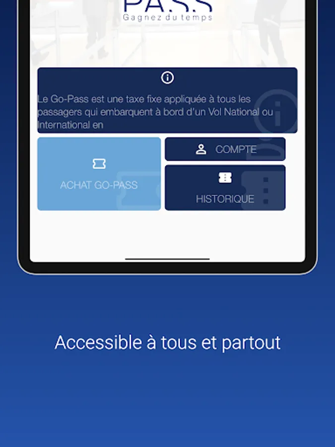 The Go-Pass is a fixed tax applied to all passengers who board a National or International Flight from one of the airports or aerodromes of the DRC