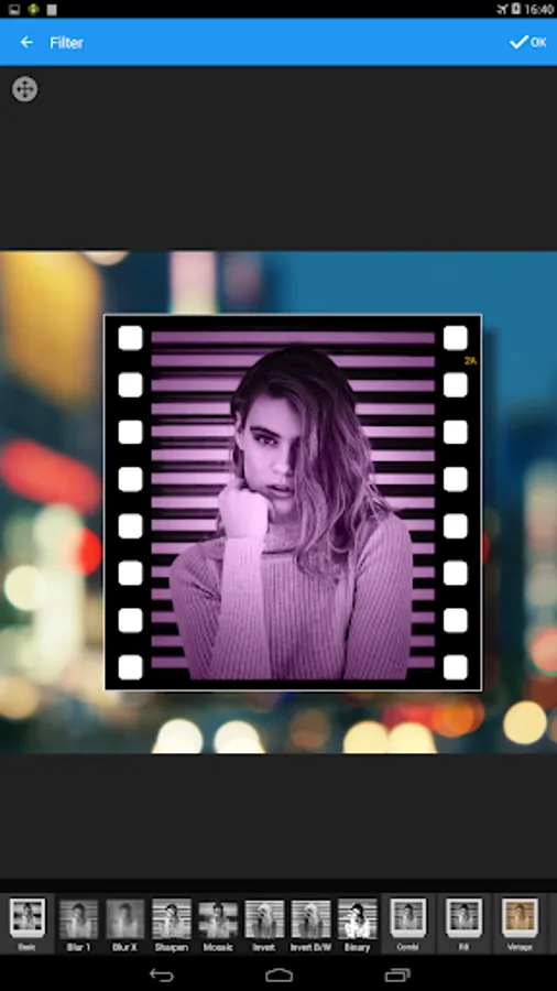➤ Filters: smooth, blur, mosaic, sharpen, invert (negative), binary, vignette, grayscales, sepia, vintage filters, ... Hundreds of filters available!.