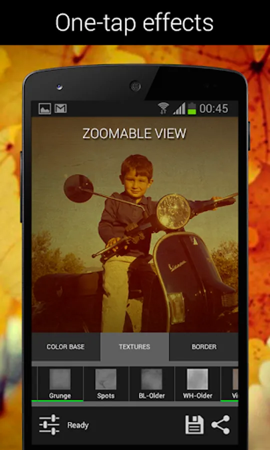 Unlimited possibilities either to make your photos look scratched, spotted or damaged by time, or to transform your pictures into old-style works of art you'll want to share with friends and family.