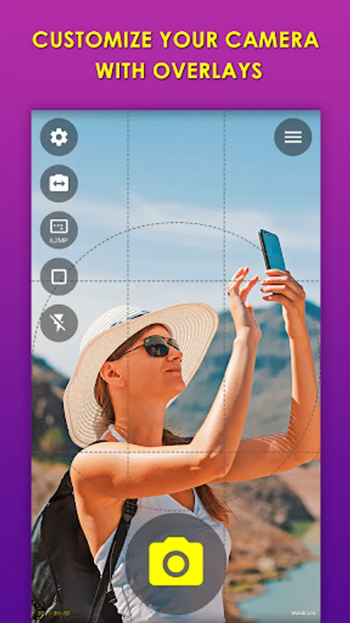 ➤ On-Screen Guides: Vertical, Horizontal and Circular guides help to take the perfect picture. Also includes a "Force Squared" mode (crops the picture to turn into squared). Ideal to take pictures for profiles on social networks.