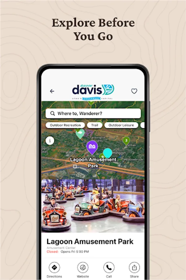 In the Wander App you'll find premium and official maps for large and small travel and recreation destinations. No more downloading an app for a single location, and no more fumbling with paper maps. Scan a QR code and have instant access to an official, gps enabled interactive map built and updated by the destination themselves.