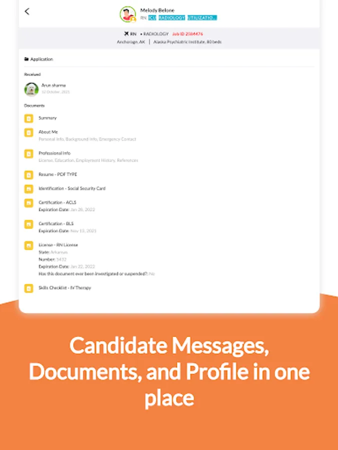 - Once a recruiter in the agency receives a clinician’s documents, any recruiter that works with the same clinician after will see the original documents sent.