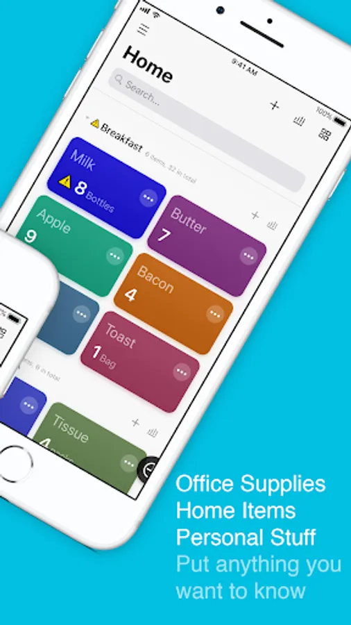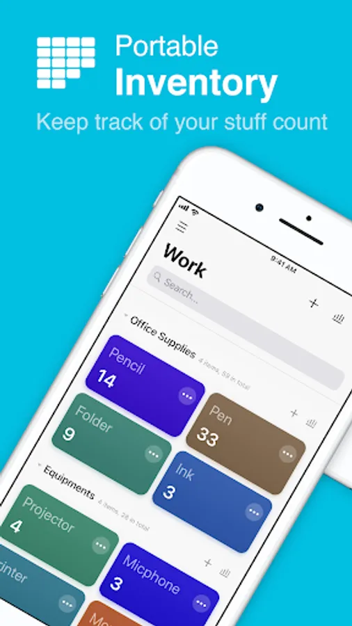 Portable Inventory helps you to keep track of the count of anything you want. Personal stuff, office supplies, product storage, etc. You can add different items into the app, set its initial count, warning count, and separate items by groups.