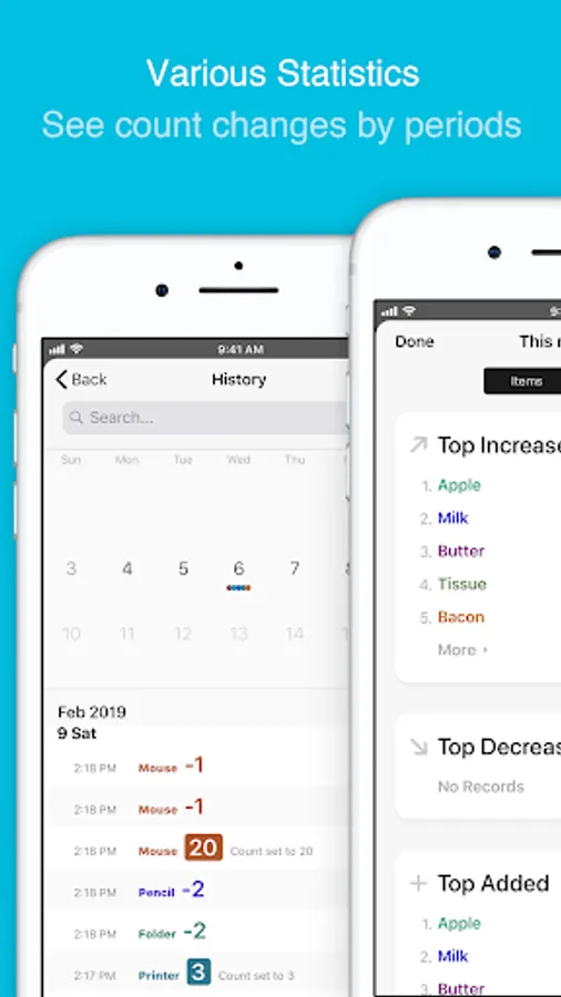 In addition, the app provided various functions to see statistics for your items or groups. You can check out the increasing, or decreasing ranking list of your items or groups in a specified time period. You can also see the change logs for all items and groups.