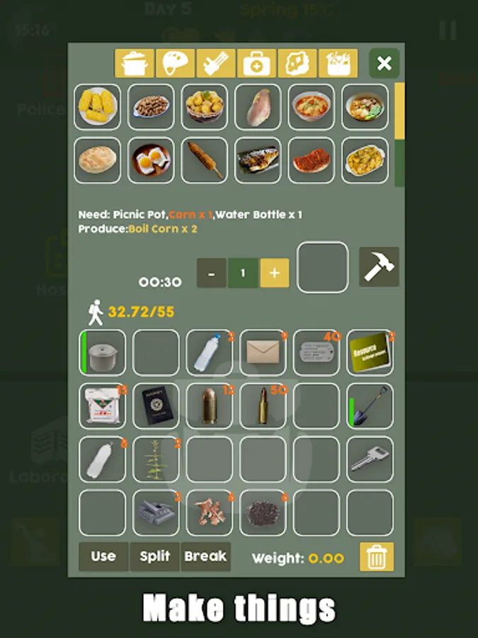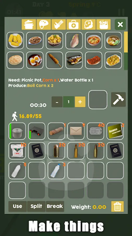 In the end want to survive, you must learn to produce their own weapons and equipment, to defend and kill the zombies, otherwise you will be at the end of can't do anything.