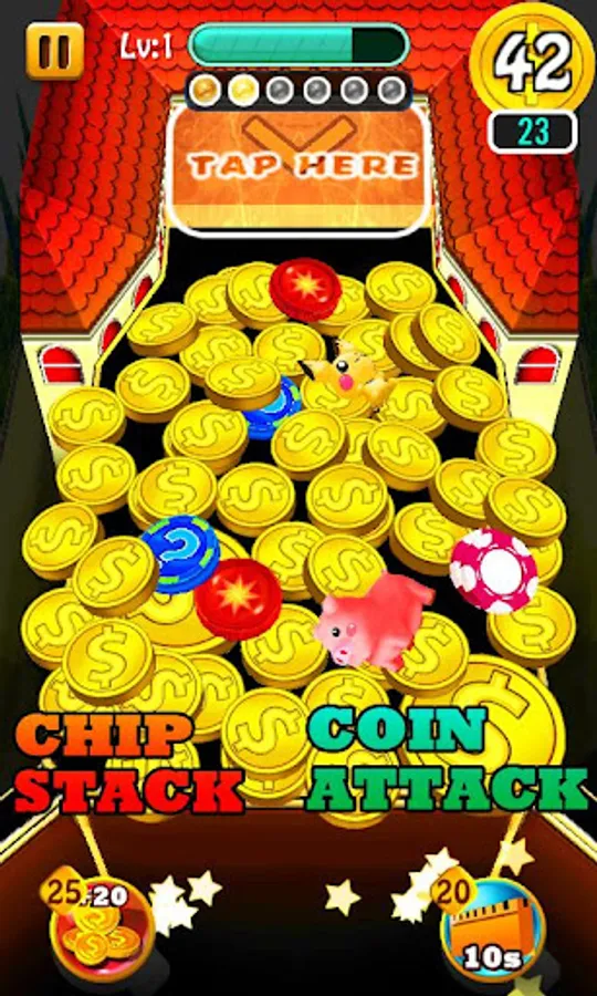 - Push shiny gold coins and exciting prizes into your hands in the coin pusher machine
