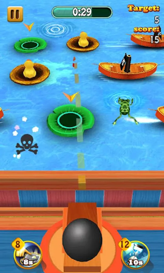 - Slide the frog flying towards lily pads and land them in the lilies in frog toss game