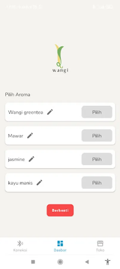 5. Pilih WANGI sesuai aroma yang anda inginkan melalui aplikasi