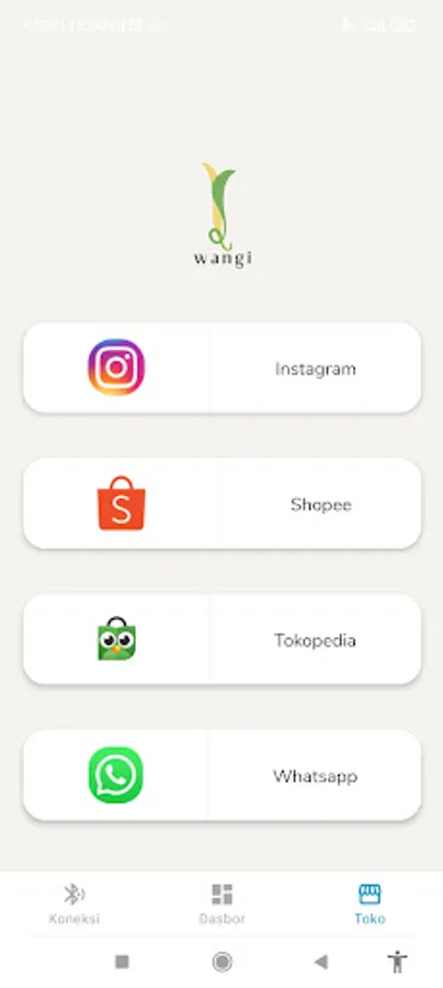 Dapatkan koleksi produk WANGI melalui menu Toko yang dapat Anda akses melalui aplikasi ini.