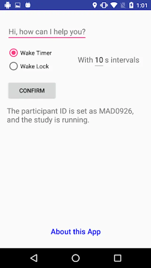 2. Participant ID will be shown as a notification on the phone all the time, and the results will be renamed with the participant ID once the recording is over.