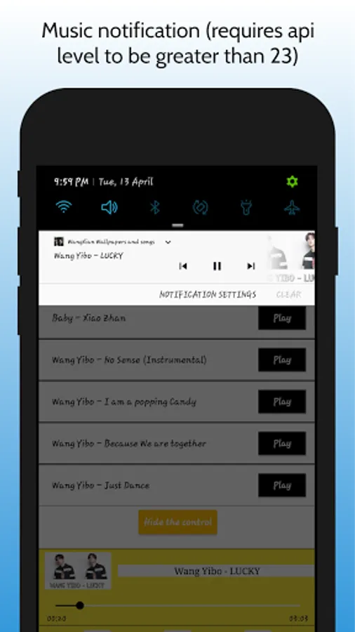 ● Music Notification enabled