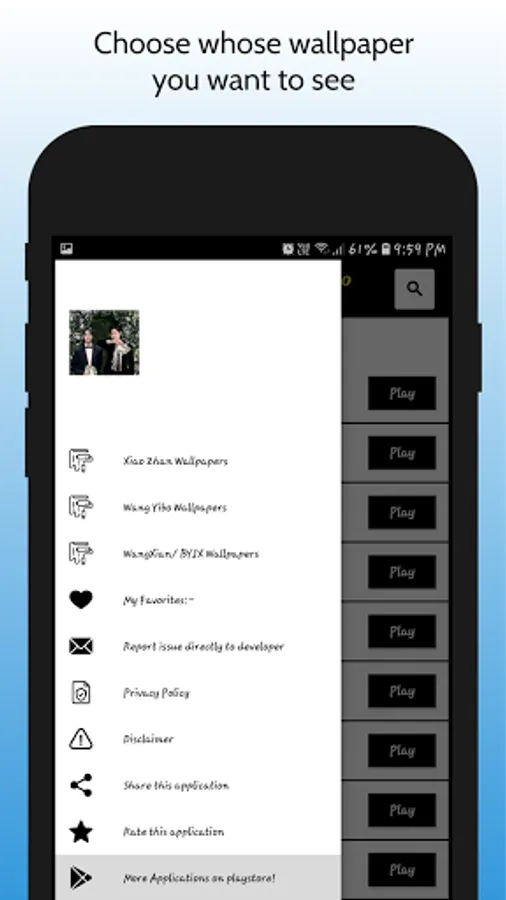 The app only provides images for users and fans to set it up as their phone wallpapers. If you have any problem with any of the picture, please contact us and we will delete them as soon as possible. Also if you want to contribute and want to add some wallpapers in this app, mail to us at appssolution365@gmail.com