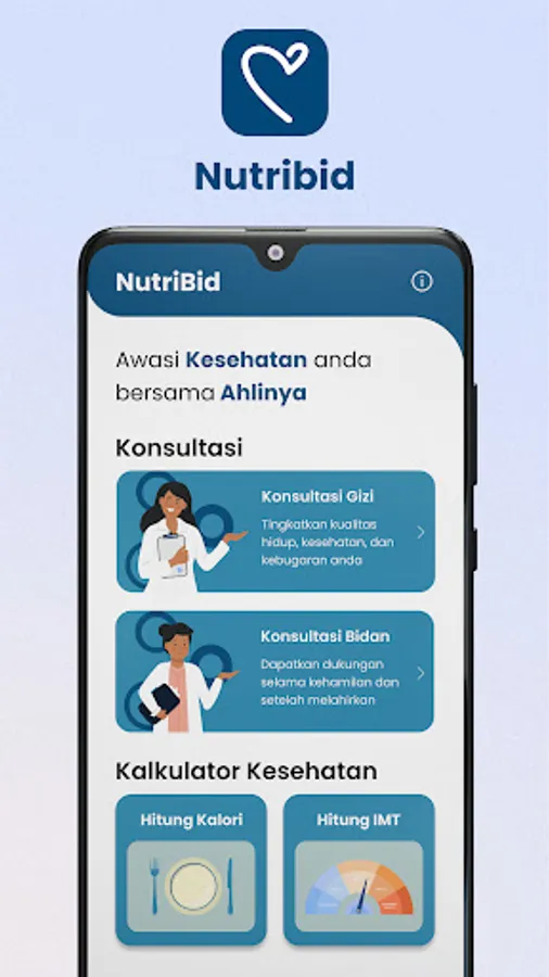 The Nutribid application is here to provide features designed to make it easier for users to maintain their health and nutritional needs. Nutribid provides online nutrition and midwife consultation features as well as features for calculating energy needs and nutritional status.