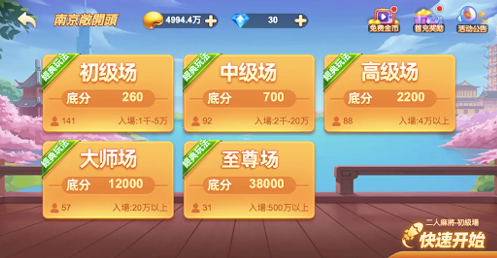 "Everyday Nanjing Mahjong" is a mahjong game popular in Nanjing, Jiangsu. There are 144 tiles in Nanjing Mahjong, 20 of which are flower tiles, 4 for Fortune, 4 for Red, 4 for White, and 1 for each in spring, summer, autumn and winter.