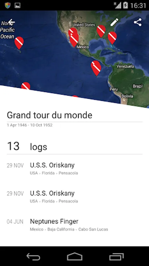 - Share spots/logs/trips/ to your community thru Facebook, Google+ and other social networks