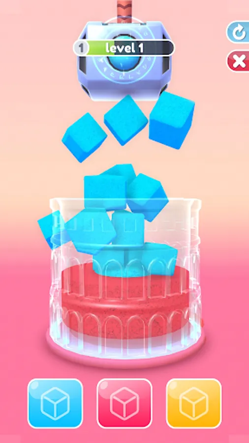 Become a legendary Kinetic Sand player! Smash Kinetic Sand is a satisfying and relaxing game. Choose containers of the appropriate style and shape. Fill the containers with the colored cubes of your choice. Crush the cubes into the sand to create a perfect layer. Create a sequence of color layers to your liking.