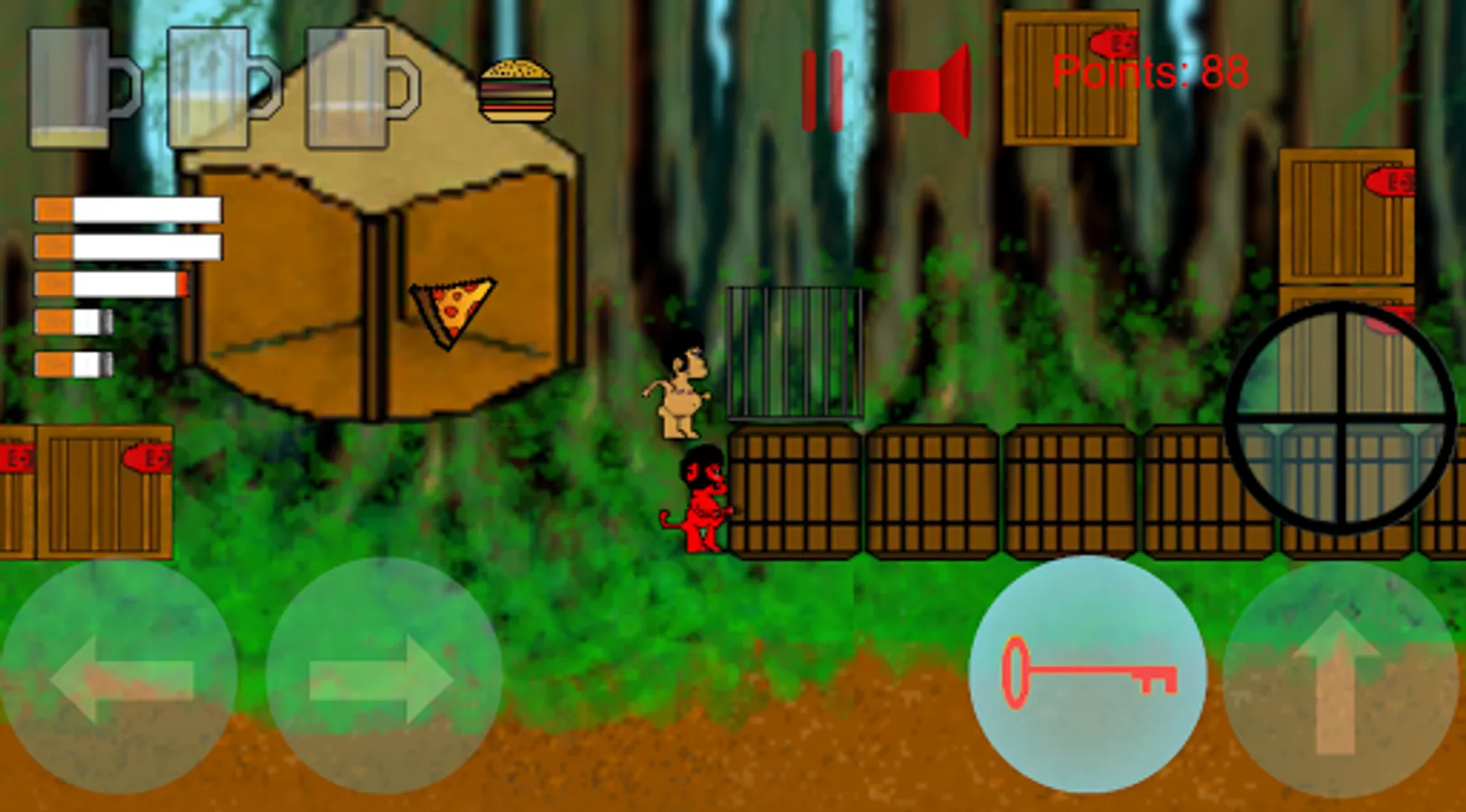 Wombats used to live in peace in different tribes or Mahuas, as they call them. Now some hunters are capturing them to use them as slaves. Become E-Mahua, the unifier, the only one who can lead the three Mahua tribes and repel the invaders. But don't forget to ask your mates for a cigarette, E-mahua needs them to continue with the adventure. He also loves beer as hell, help him drink to defeat the bad guys!