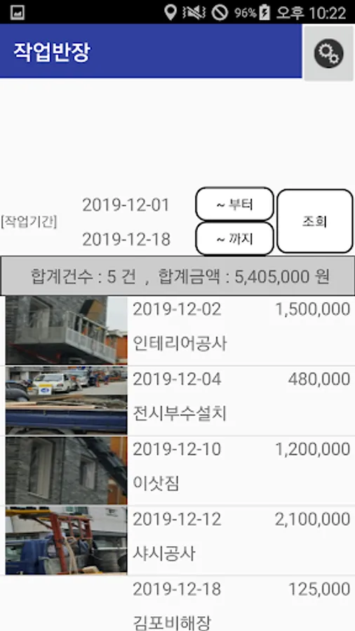 Manage work name, work period, work cost (revenue), work contents and on-site photos