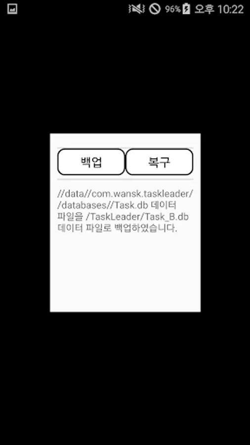 Data backup/recovery is required when deleting the task manager app and installing a new one. If you delete the app without backing it up, all stored information will be deleted.