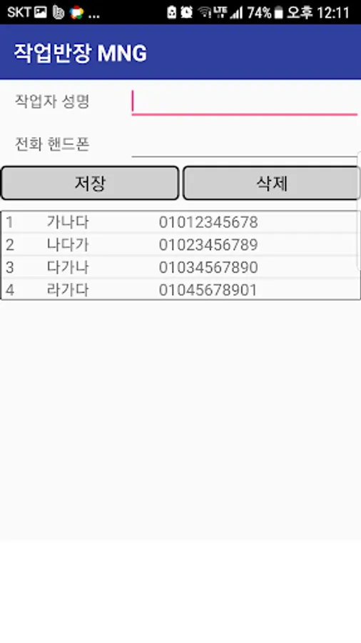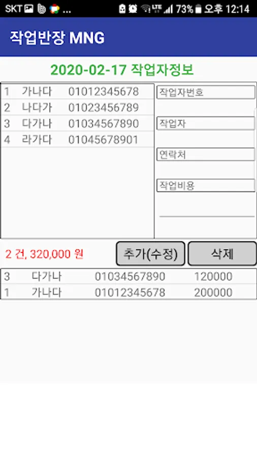 When saving the worker's name and contact in advance and entering the job information for each day, you can easily save the participant by selecting the saved worker.