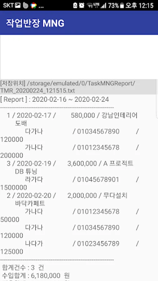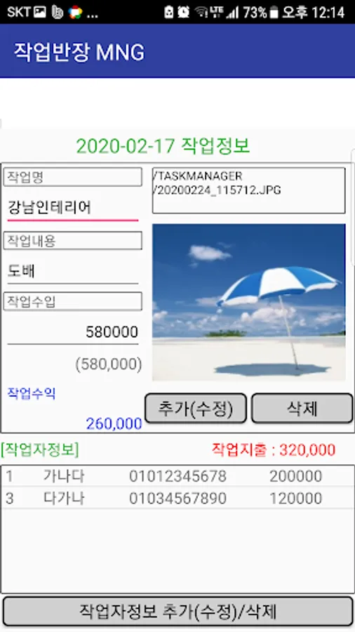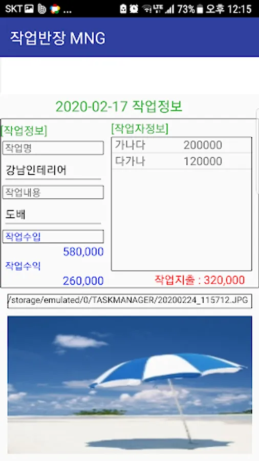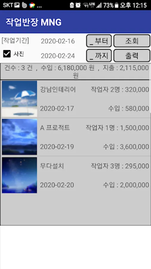 When working as a team (individuals, freelancers, laborers, etc.), it is possible to record team-level work (work) contents and store grounded pictures, analyze profits and expenditures (labor costs) by period, and save and manage text documents You can.