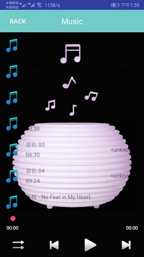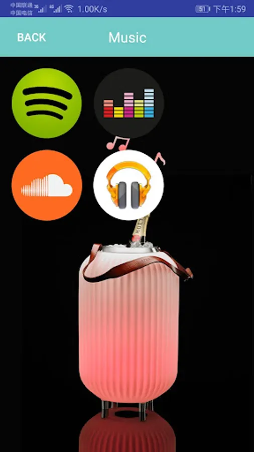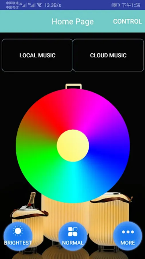 (3) control page: the lighting brightness can be adjusted. There are four modes of disco, comic, rock and warm, which can set the way of lighting flashing. Include power switch to turn off power. Light switch, can turn off the light, only listen to music.