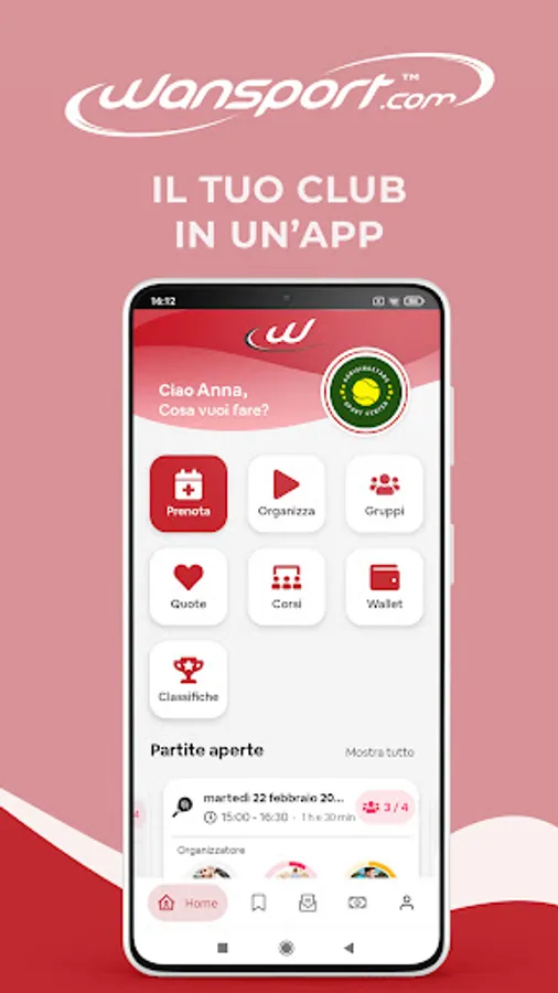 Potrai inoltre accedere ai servizi erogati dal club come la prenotazione online dei campi, i corsi e gli abbonamenti, le quote associative, le attività sportive, le lezioni in programma e molte altre funzionalità.