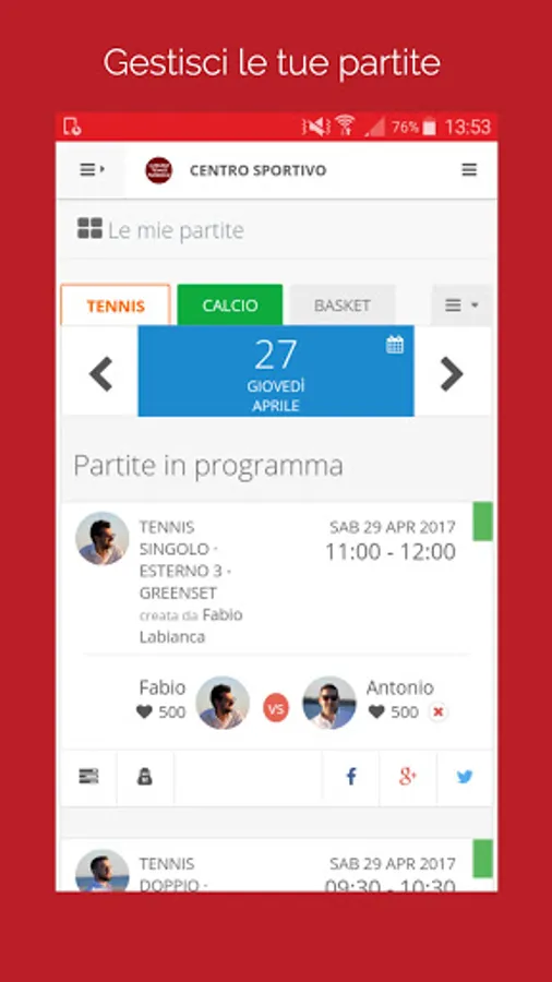 With the Circolo Tennis Piossasco Wansport.com App you will always be updated on the sport and recreational activities of your club.