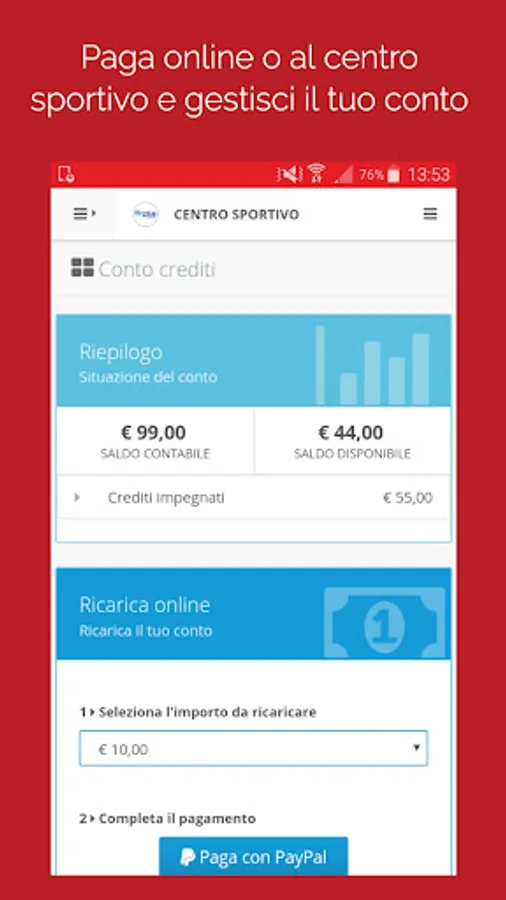 You will also be able to access the services provided by the club such as online booking of camps, courses and season tickets, membership fees, sports activities, scheduled lessons and many other features.