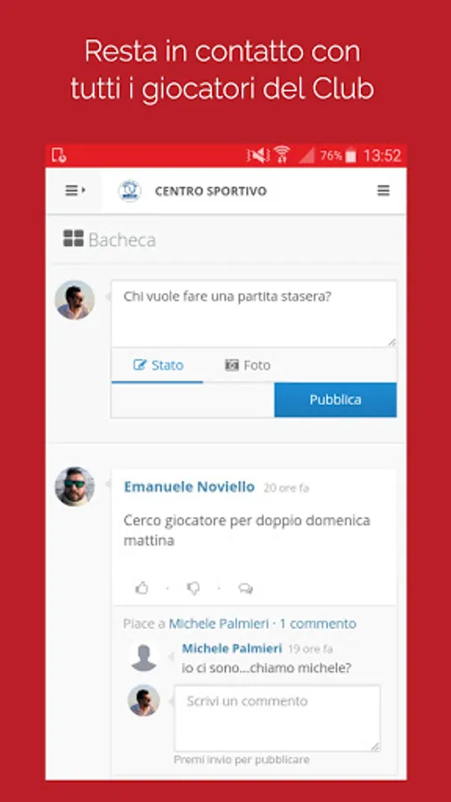 With the Tennis Club Luigi Laghi Wansport.com App you will always be updated on the sport and recreational activities of your club.
