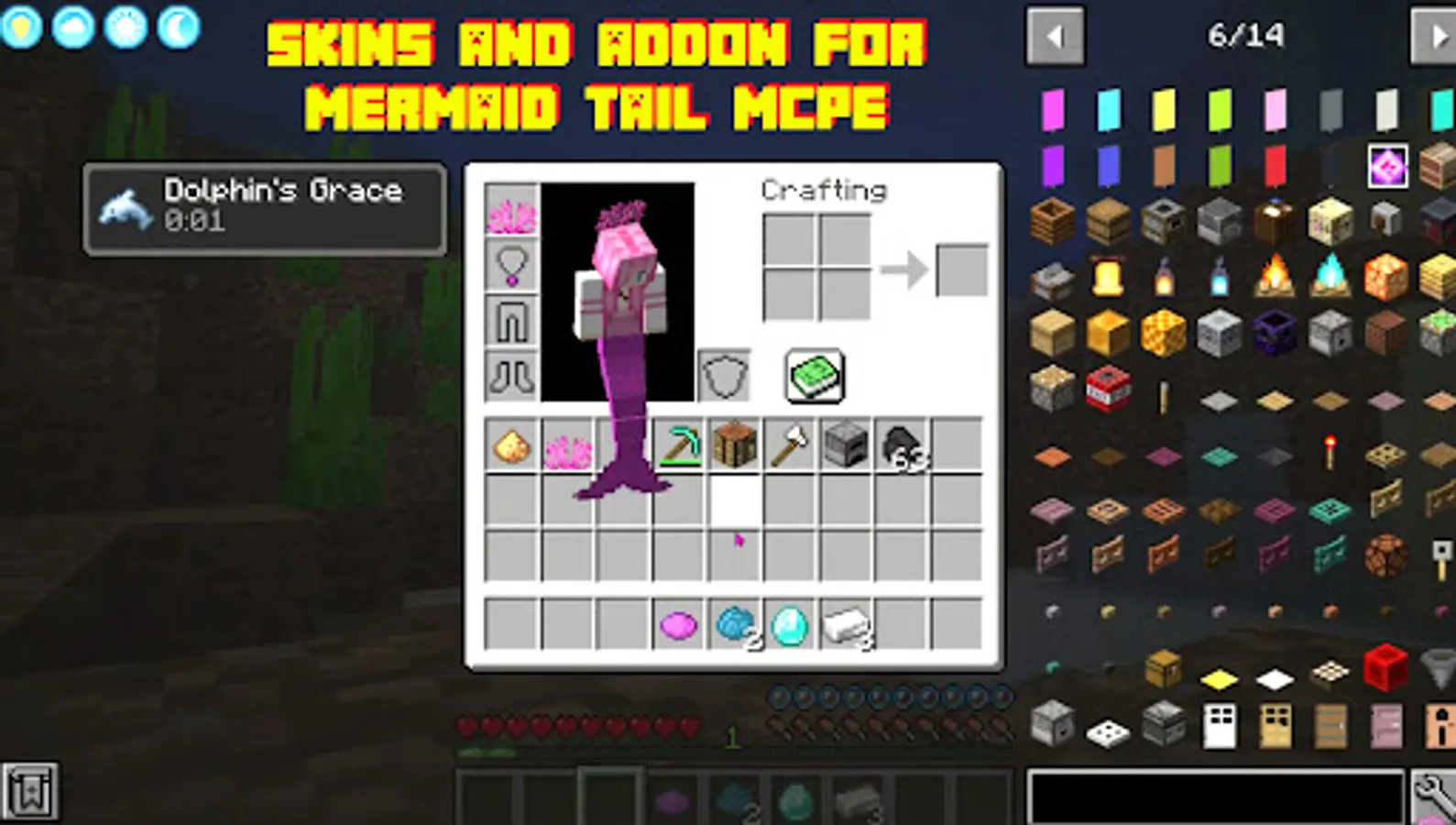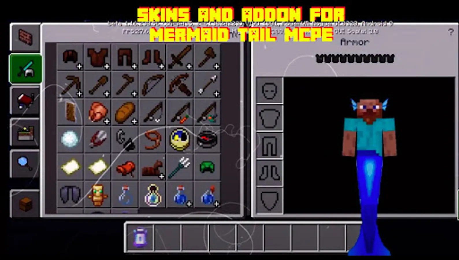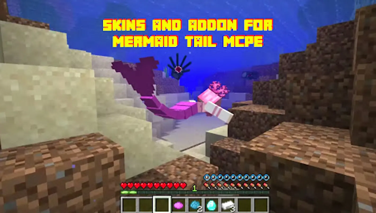 Hello guys, back here with the mcpe mermaid and tail mode applications which are always present to complete the collection of wing skins for mcpe. Don't worry, because here you will be able to explore more by downloading this mermaid mod for mcpe. This application is equipped with various features that can accompany you in playing by running mcpe dragon wings mod on your smartphone. Invite your friends to complete Minecraft PE by installing this mermaid skin for mcpe. In this application it has been specially designed for you to collect mcpe mermaid and tail mod. Give suggestions and comments that are supportive of the development of this mermaid for mcpe application. Don't forget to also give 5 stars, so that we can continue to be enthusiastic in developing this wing mod application for mcpe. You are free to download, install, then explore the contents in the mcpe mermaid and tail application with your friends. Don't miss out on installing the tail mod for mcpe on your smartphone, because in this application you can add to the collection of mcpe mermaid tail mod on your smartphone to support your activities so that they are not boring. Marine and Mermaids Mod for Minecraft PE is a collection of add-ons that would help you explore Minecraft underwater. This app contains house maps (luxurious modern mansions for mermaids) and mods for crafting mermaids.