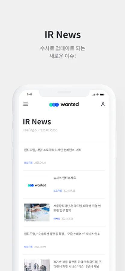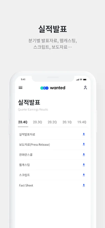 This app is an application that provides IR information of Wanted Lab. It provides the latest IR information such as IR schedule, quarterly earnings release data, various IR news, major management reports, financial information, disclosure, and IR contact information.