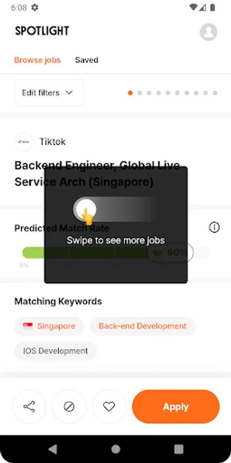 Your next career move shouldn’t be confined to what’s on your resume. Simply select your interests and info and see what comes up in your match. Our AI will match you with jobs from top tech companies across the web based on preferences that's important to you, such as company culture and matching skill sets. Not sure what job is right for you? Take our short career quiz to get started and see which companies value the same things as you do.