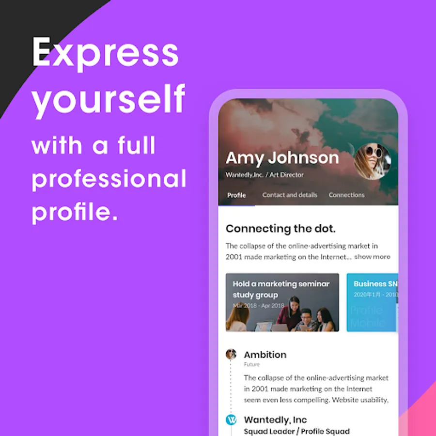 You’re more than what your card says. Say what you can’t fit in those few square inches through a Wantedly profile complete with a self introduction, work history, education, achievements, projects, social media links, and more.