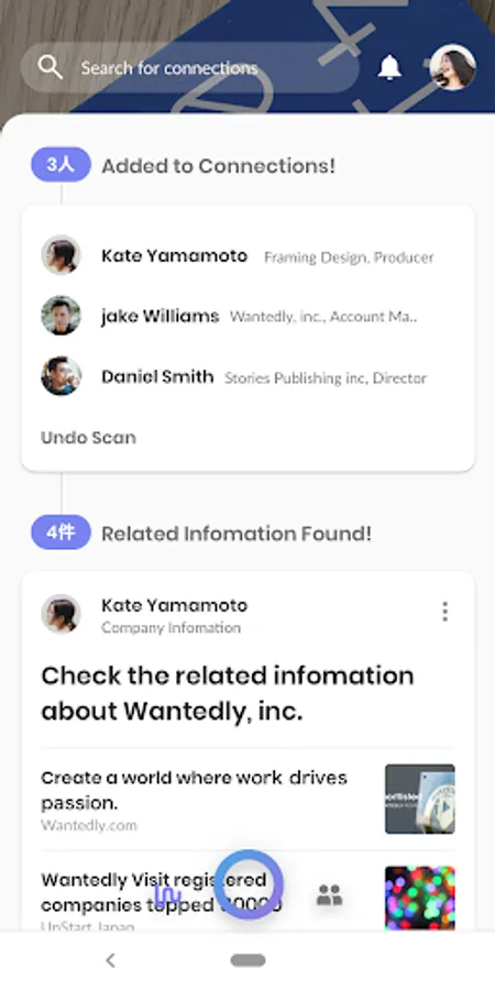 No other app scans multiple cards at once, in any way you scatter them. Wantedly People captures them all in a matter of seconds.