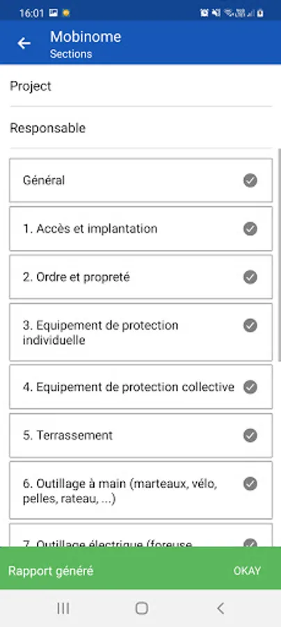 Manage your site reports dynamically and answer the questions you are asked. Various types of questions can be asked: yes / no, project, qrcode, users, date, number, ...