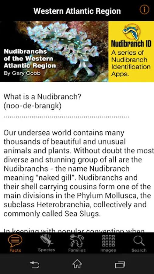 This field guide, which is updated when new names and information are presented, will place right at your fingertips, anytime and anywhere, an outstanding collection of 544 species including color variations, found in Western Atlantic waters from Canada to Antarctica. This is an area where marine fauna diversity ranges from tropical to lower temperate species. No web connection required.
