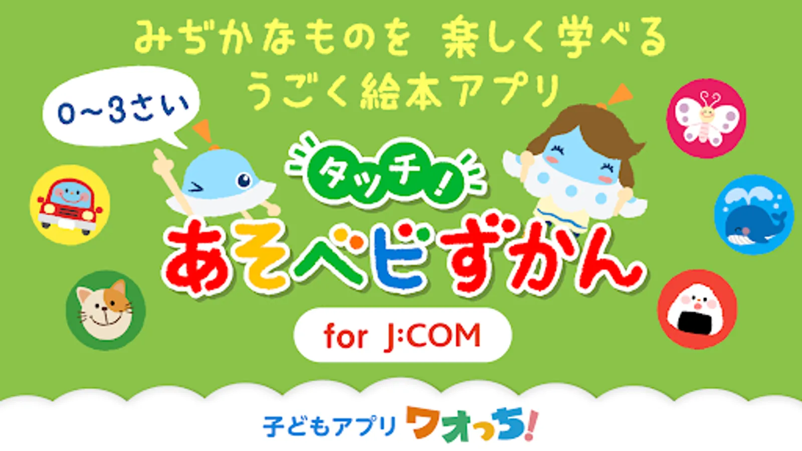 "touch! "Asobebi Zukan for J: COM" is an app of the "Wow!" Series of educational apps for children provided by "Learning and Impression Company, Wow Corporation".
