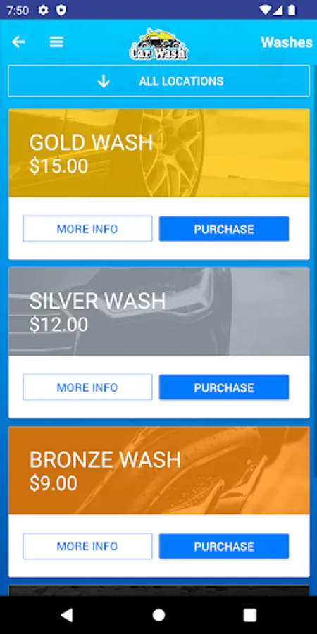 • Purchase car washes directly through the app