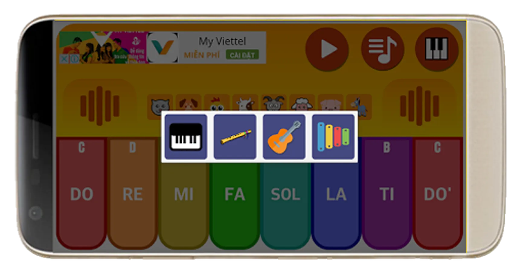 We are provides a lot of different instruments: Piano, guitar, Bamboo flute, xylophone and more in future.