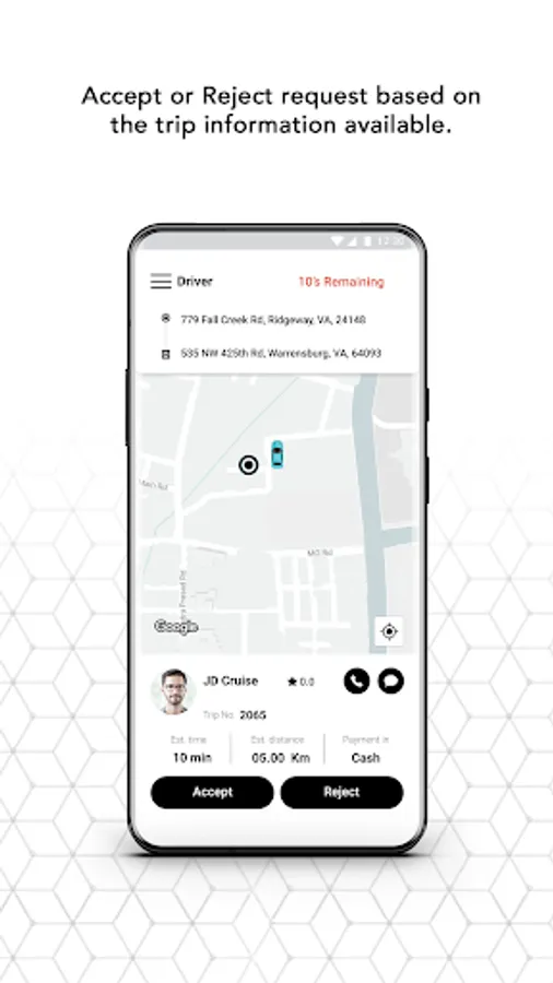 Navigate to the customer's location through Google Maps efficiently, easily, and get real-time path details. Cancel the trip with cancellation reasons like wrong address on the map, or any valid reason and see your earning reports on a daily, weekly or monthly basis including all necessary details and payment methods.