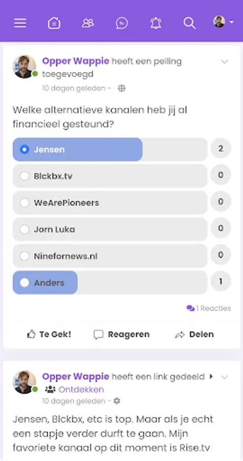 Boordevol opties. Kies ervoor om Wappiez Brullen te gebruiken voor jouw eigen vriendengroep. Zodat jij de regie hebt over welk social media nieuws je wilt volgen. Volg interessante wakkere mensen en blijf op de hoogte van de nieuwste ontwikkelingen.