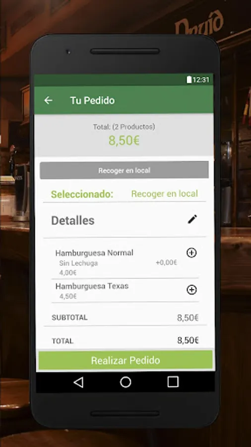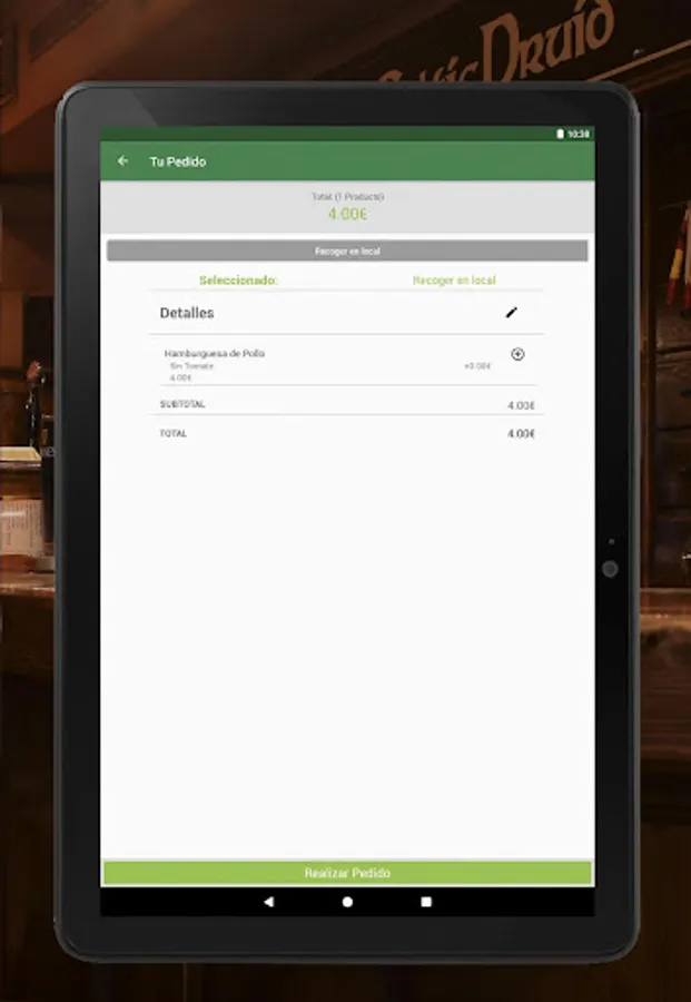 Ability to place orders for pick up at the restaurant located in the Plaza Nueva, No. 6, Las Navas del Marqués, 05230 (Ávila).