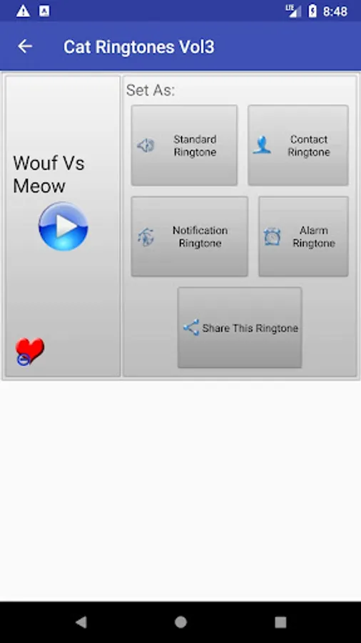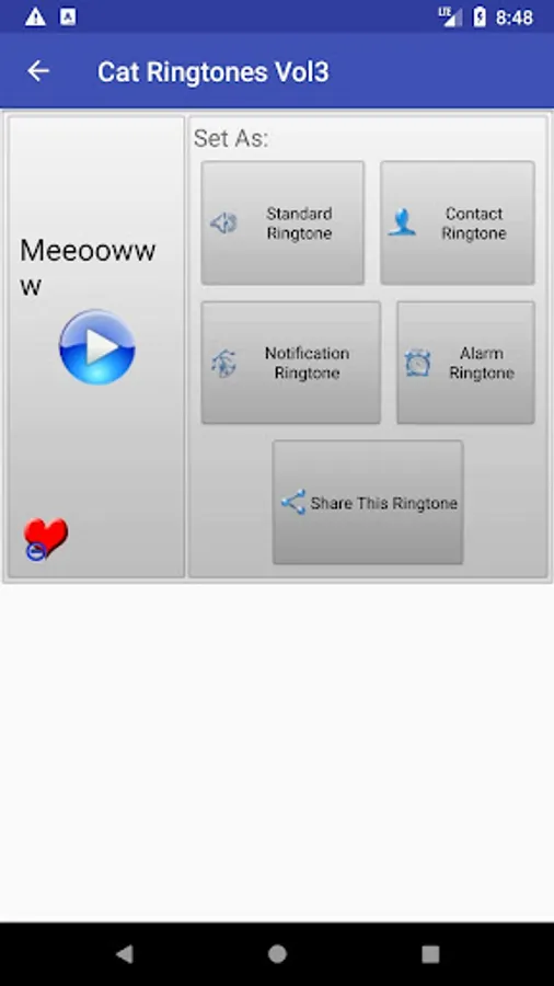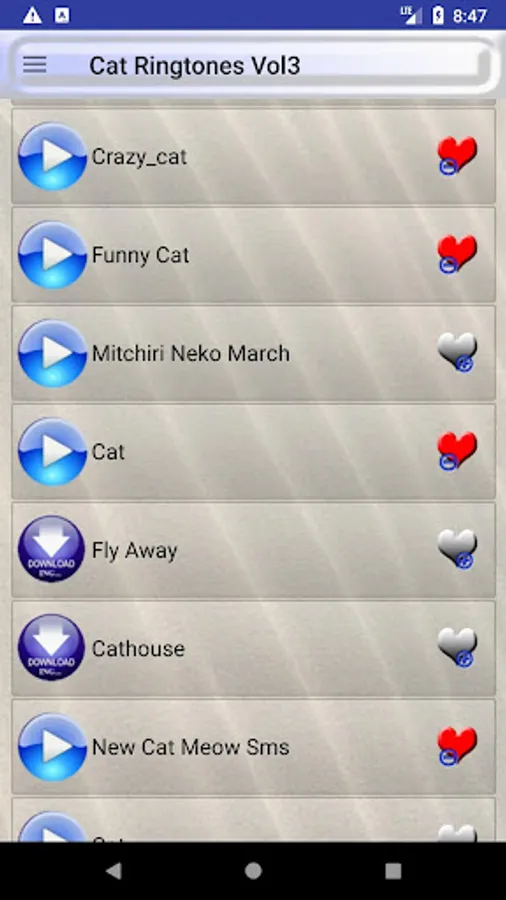 “Cat Ringtones Vol3” are the best ringtones for your Android Phone/Tablet/…. Set these free and amazing ringtones as text message notification, email notification tone, alarm ringer or contacts ringtones. Download “Cat Ringtones Vol3” free android app and be the coolest person ever. “Cat Ringtones Vol3” offers free ringtones and notification sounds to easily customize your device. Now with the new version cat wallpapers are added, so now you can set a cute cat image as your desktop wallpaper or assign it to represent a contact as his/her image.