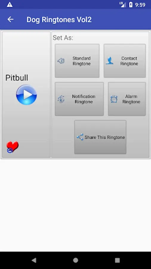 “Dog Ringtones Vol2” provides the best ringtones for your Android Phone/Tablet/…. Set these free and amazing ringtones as text message notification, email notification tone, alarm ringer or contacts ringtones. Download “Dog Ringtones Vol2” free android app and customize your notifications sounds and all kind of tones. Now with the new version dog wallpapers are added, so now you can set a cute dog image as your desktop wallpaper or assign it to represent a contact as his/her image.