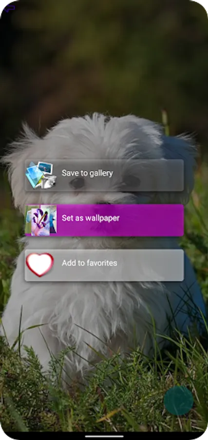 Tap on the thumb image in any category of images to open the wallpaper that you like, then tap on the floating action button and select "Set as Wallpaper" / “Save to Gallery” or “Add to Favorites” button from the menu. Each image in this app can be used and set as wallpaper.